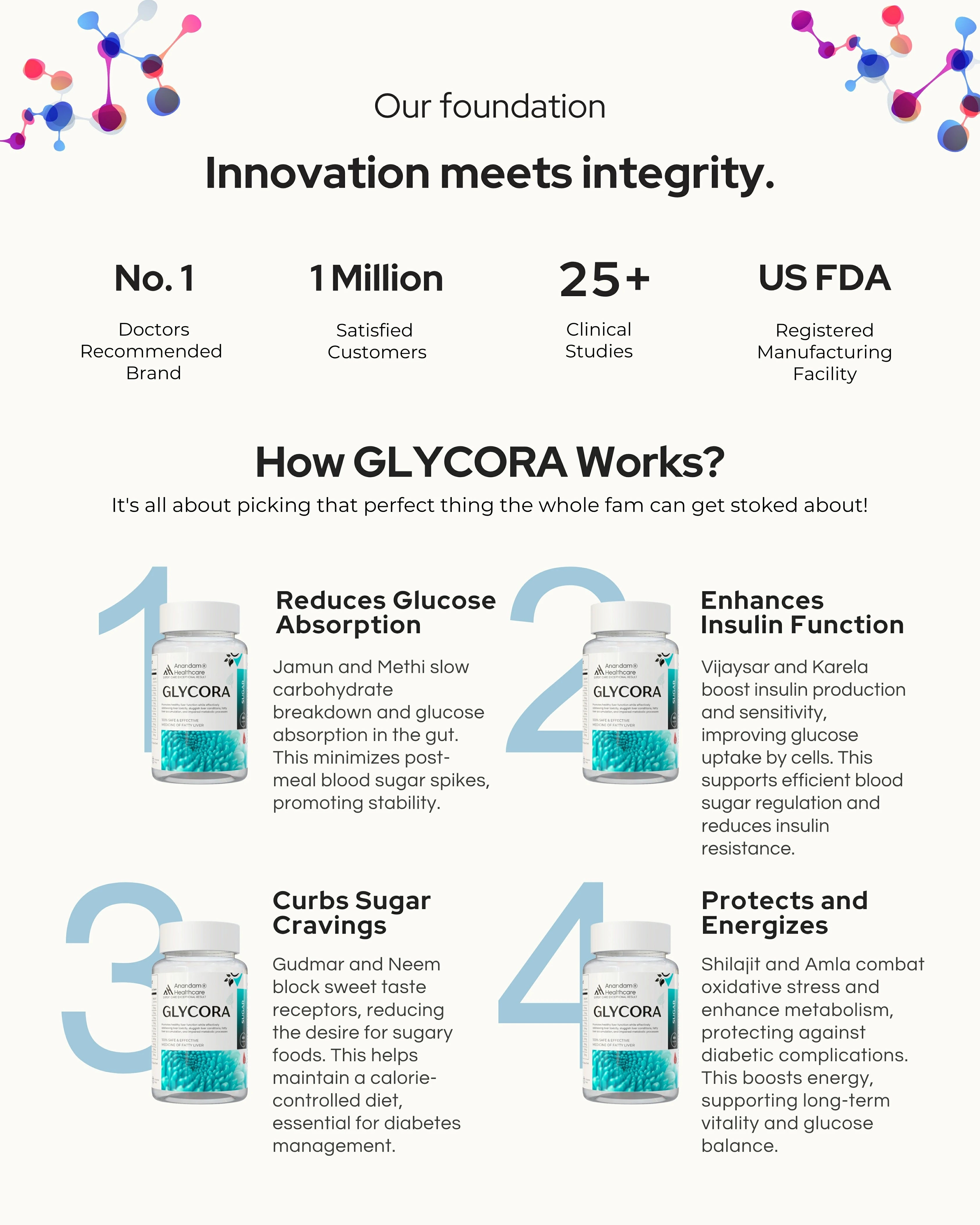 ग्लाईकोरा के उन्नत आयुर्वेदिक मिश्रण के साथ चीनी को नियंत्रित करें, ऊर्जा पुनः प्राप्त करें, और अपने स्वास्थ्य की रक्षा करें - स्वाभाविक रूप से!