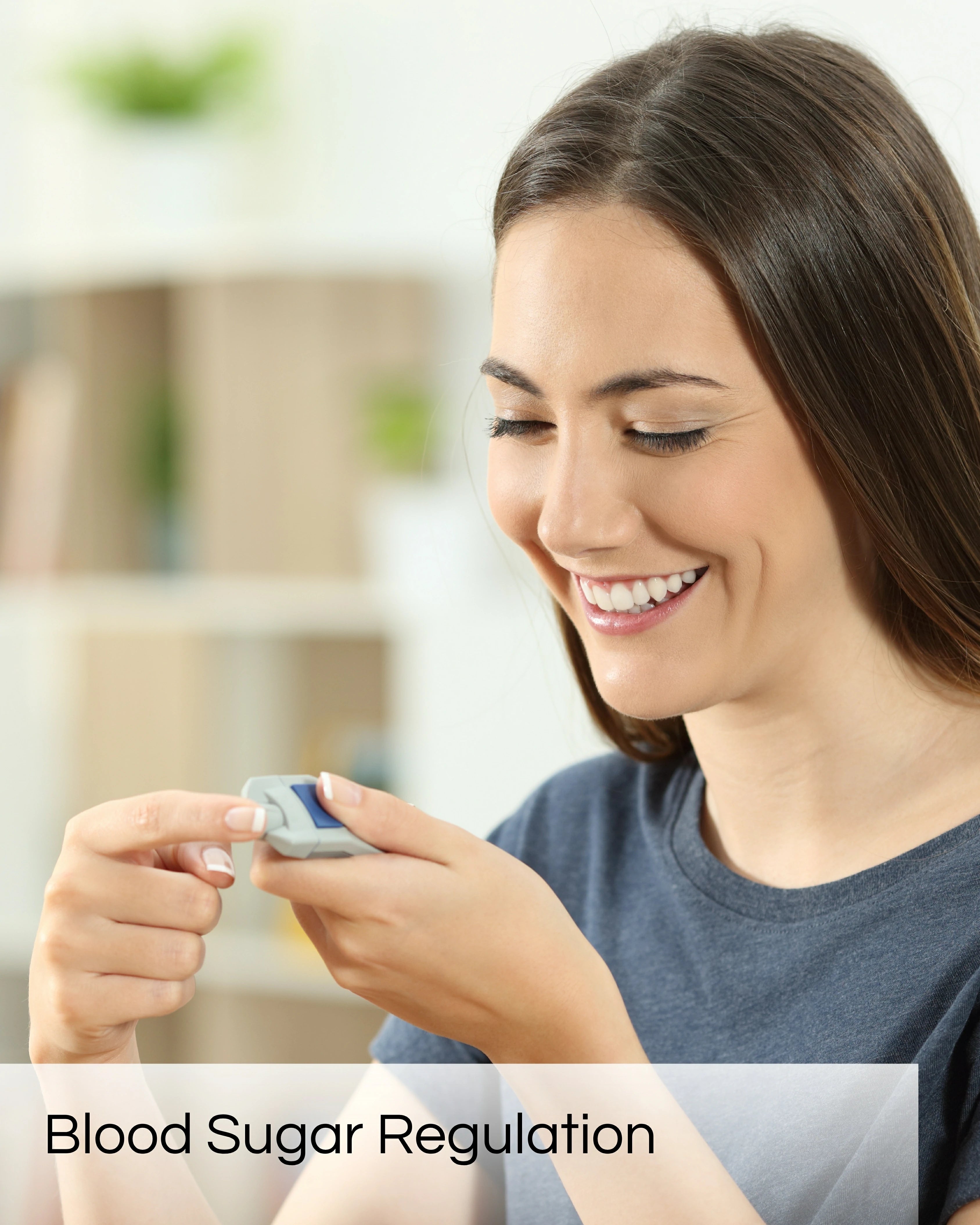 भोजन के बाद ग्लूकोज अवशोषण को नियंत्रित करने में मदद करता है। भोजन के बाद अचानक होने वाली शर्करा की मात्रा को रोकता है जो शरीर पर दबाव डालती है। पूरे दिन ऊर्जा के स्तर को अधिक स्थिर बनाए रखता है। दैनिक जीवन में रक्त शर्करा को बेहतर ढंग से नियंत्रित करने में सहायक।