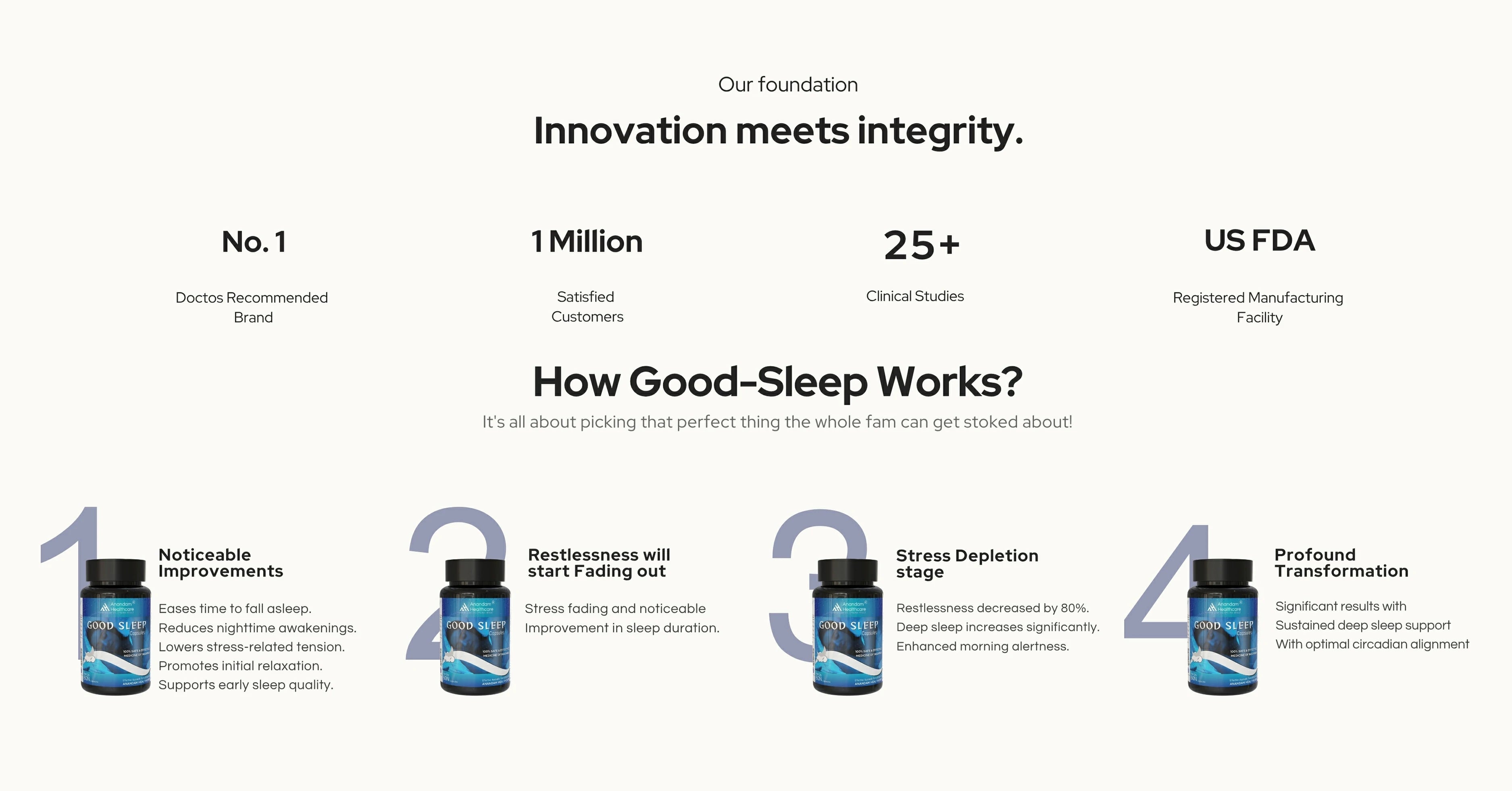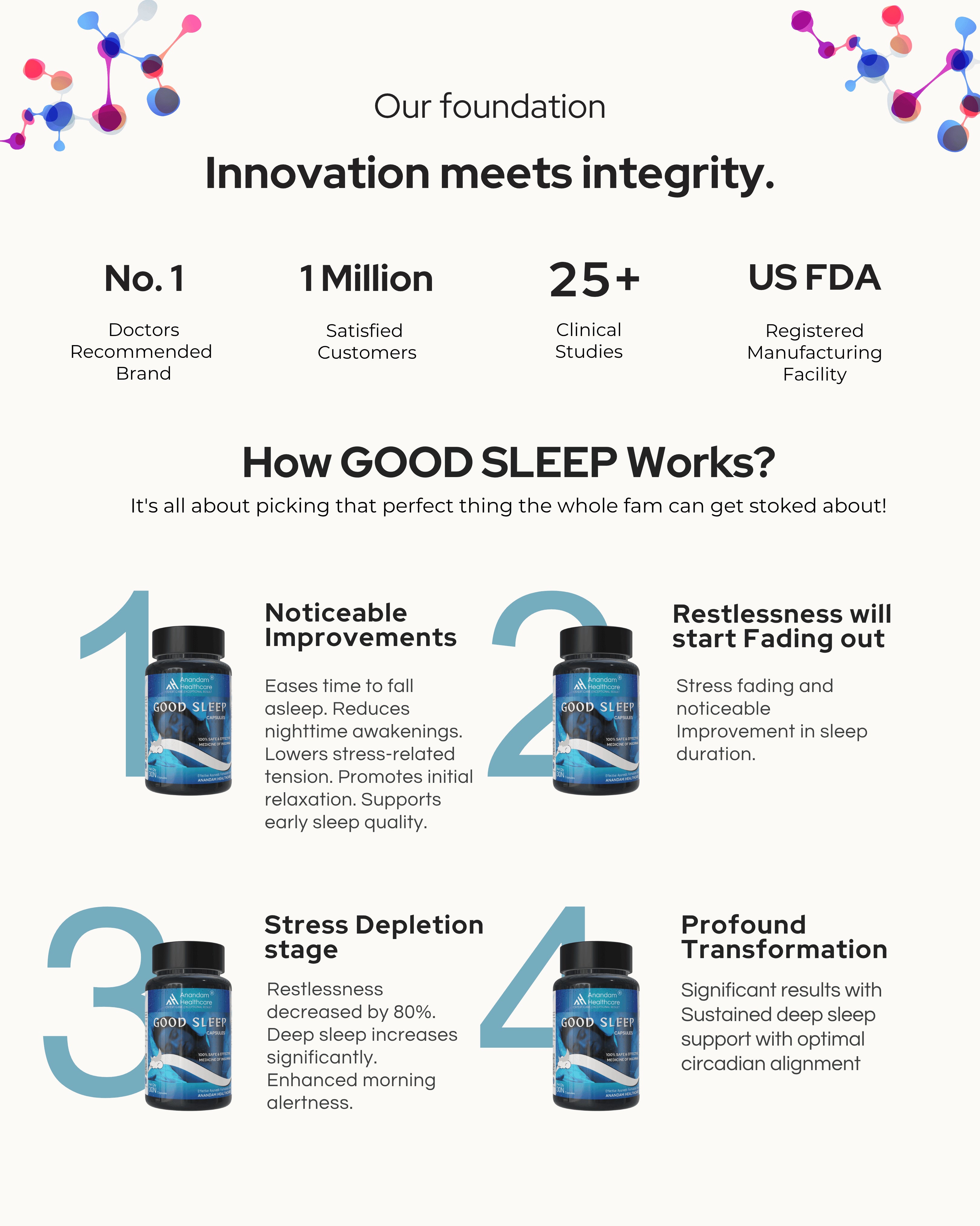 गुड स्लीप आयुर्वेद के प्राचीन ज्ञान का उपयोग करता है, जिसे आधुनिक विज्ञान द्वारा संवर्धित किया गया है, ताकि आरामदायक नींद के लिए प्राकृतिक और समग्र समाधान प्रदान किया जा सके।