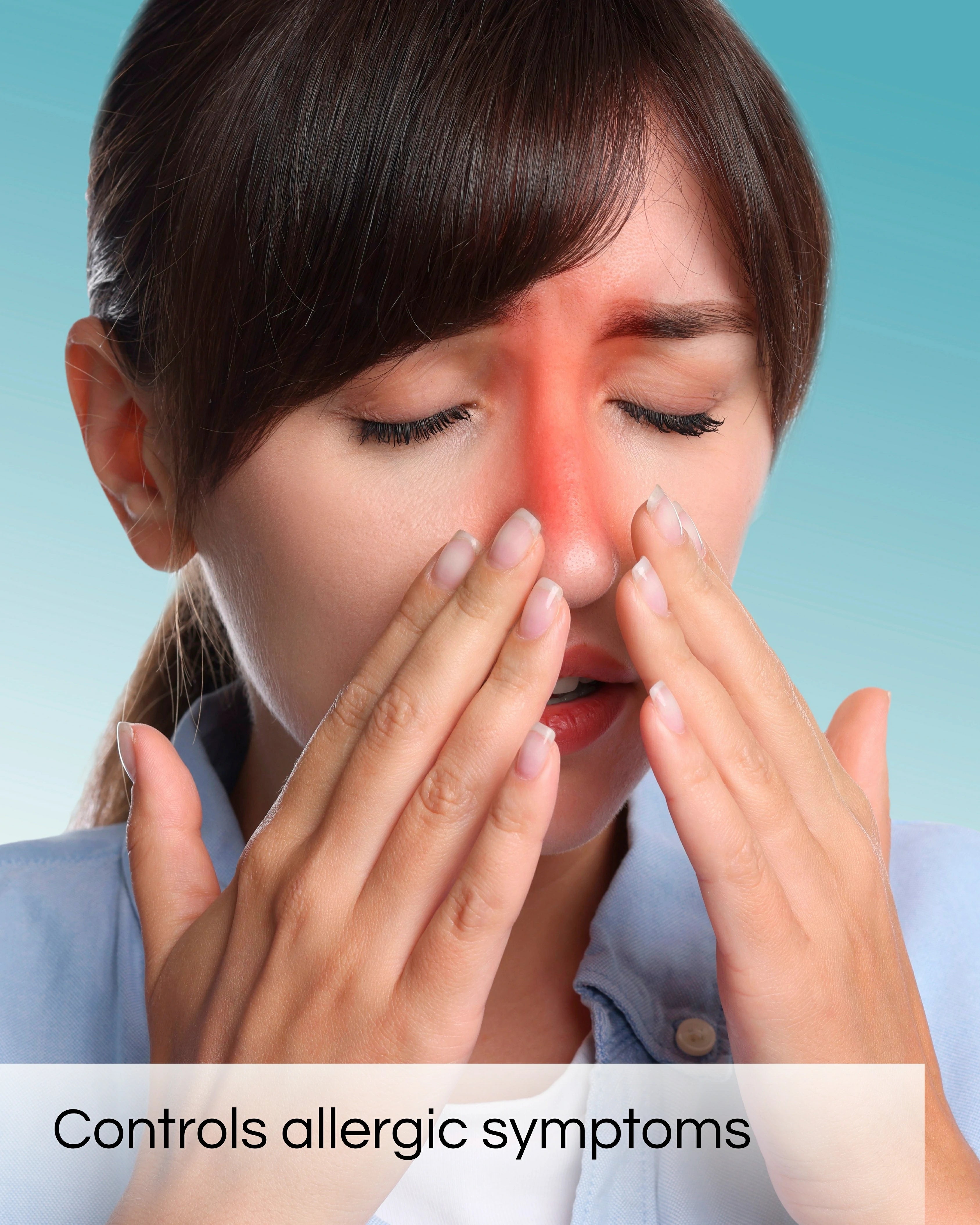 नाक की जकड़न को कम करता है और आँखों की खुजली को आराम पहुँचाता है। छींक, बहती नाक और साइनस के दबाव को कम करता है। कोमल, प्राकृतिक अवयवों का उपयोग करता है—बिना किसी कठोर रसायन के। एलर्जी के लक्षणों को दिन-रात नियंत्रण में रखता है।