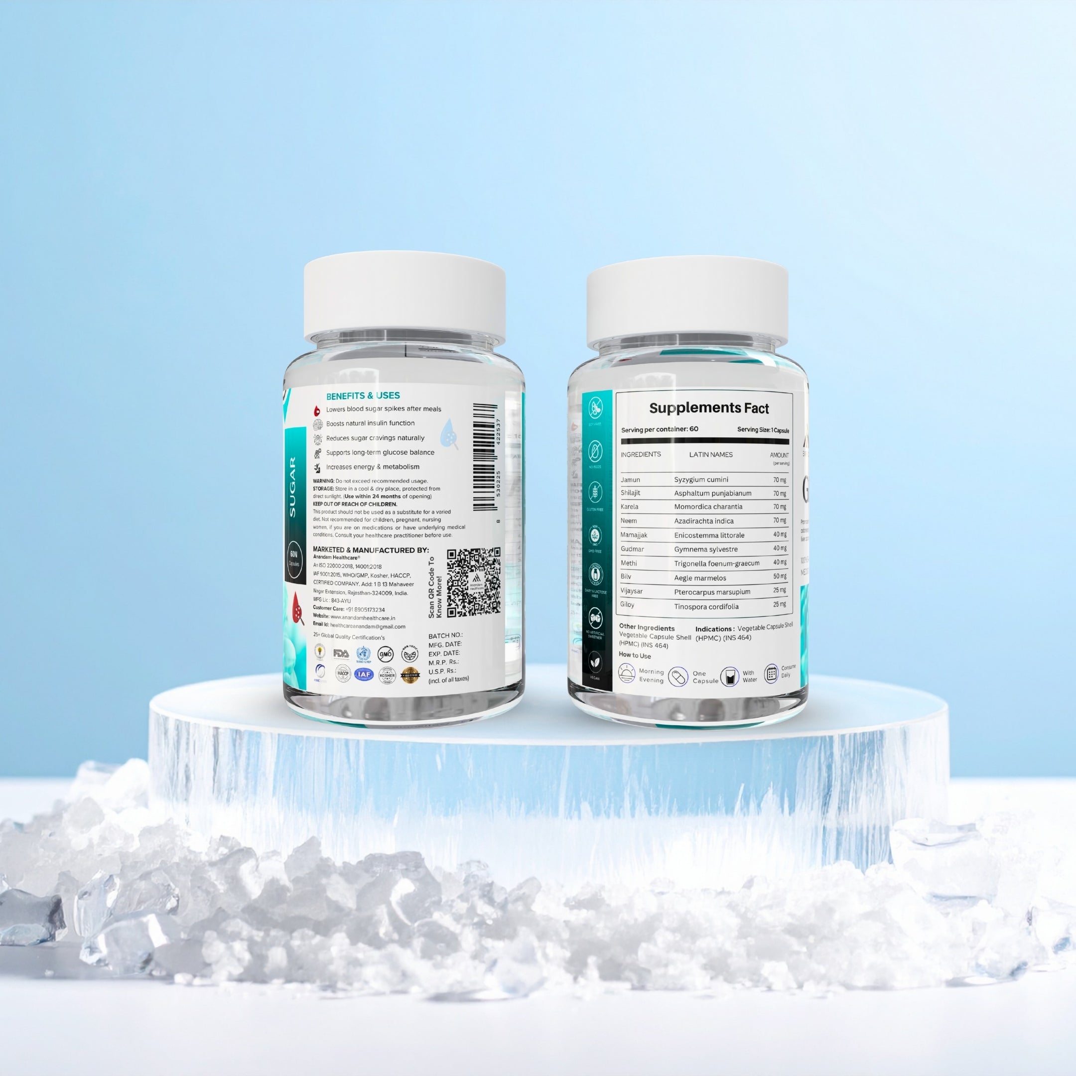Natural regulation of blood sugar and insulin sensitivity restores metabolic balance. Jamun and Gudmar work synergistically to reduce glucose spikes, promoting lasting control and sustained vitality.