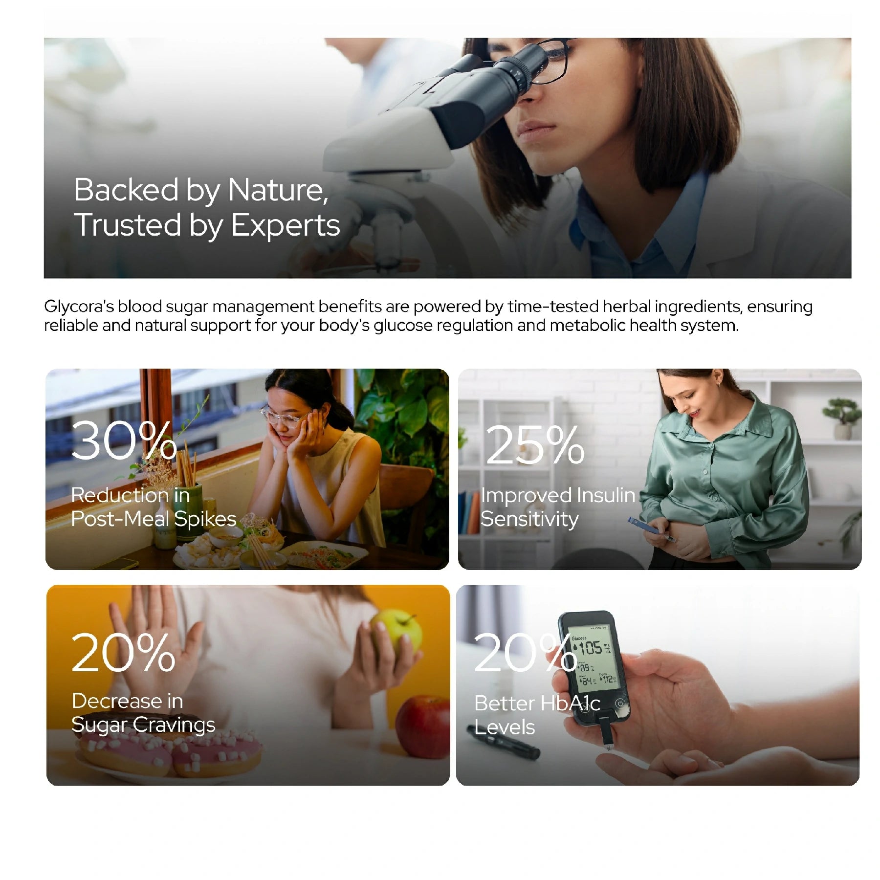 "My post-meal sugar spikes were always high. After 2 months of Glycora, my levels are much more stable."
