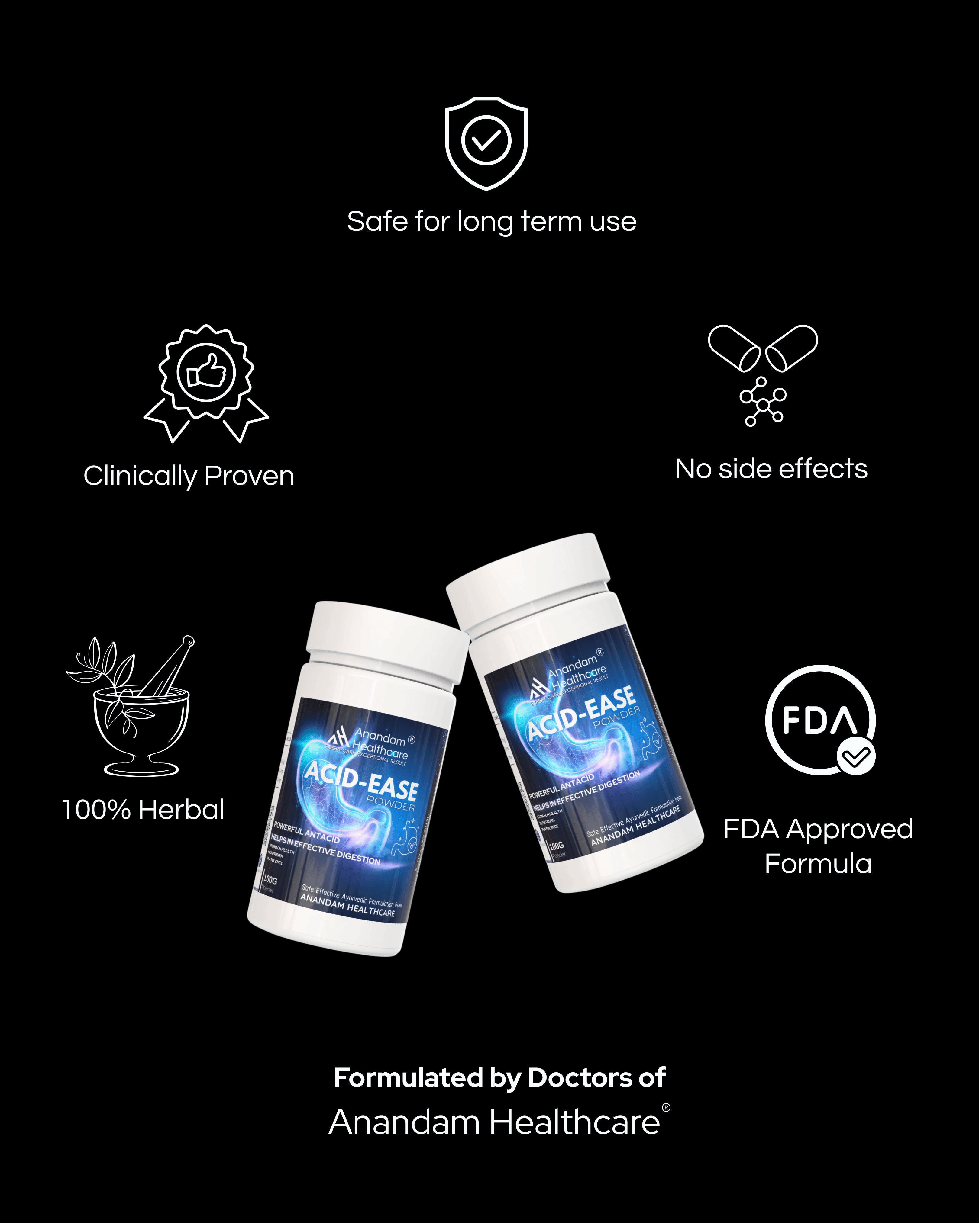 आनंदम हेल्थकेयर की ओर से एसिड-ईज़ प्रस्तुत है, जो एसिड रिफ्लक्स को नियंत्रित करने, आपके आंत के माइक्रोबायोम की मरम्मत करने और आपके अन्नप्रणाली की रक्षा करने का एक प्राकृतिक और प्रभावी समाधान है!