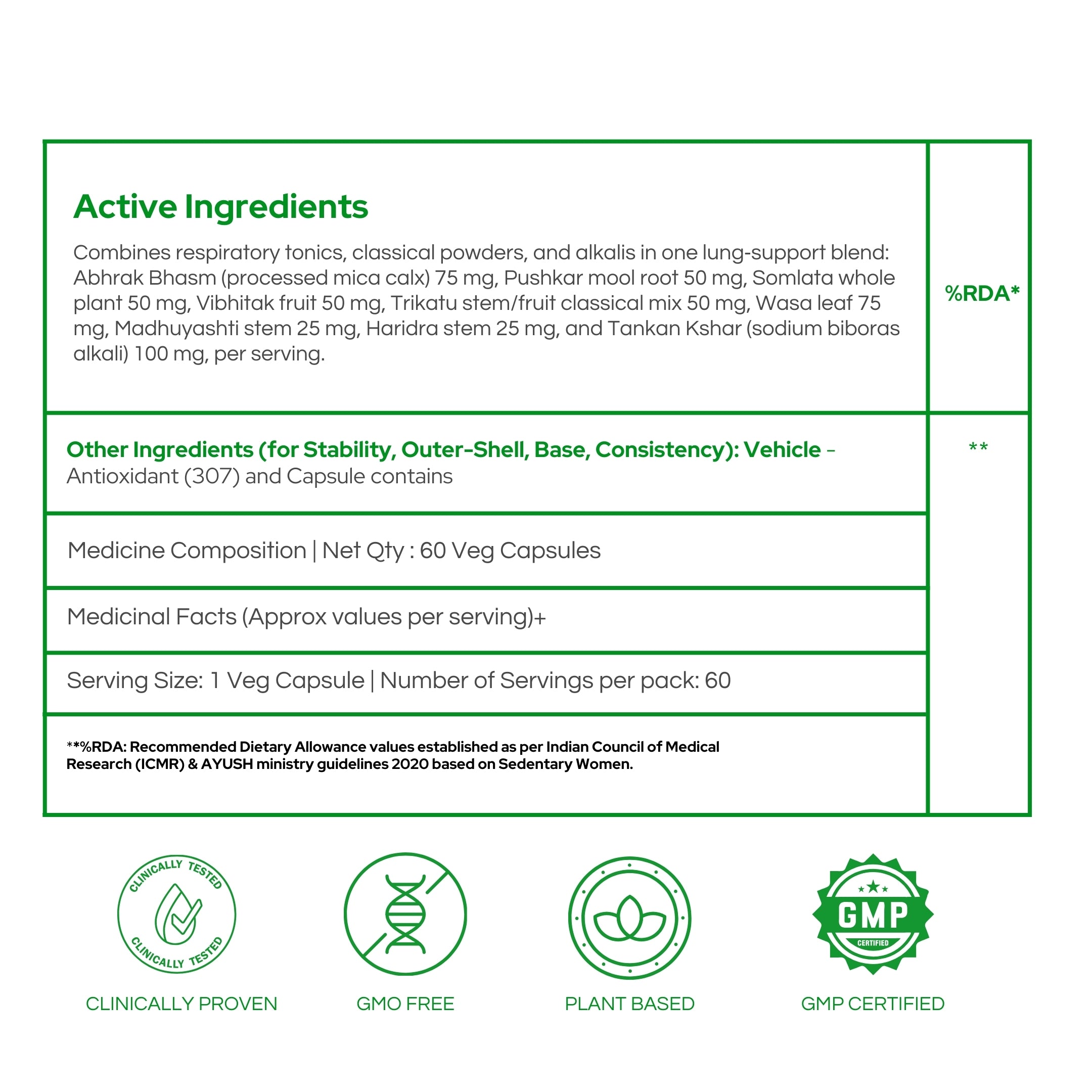 | Wasa Patr (Adhatoda vasica) | 75mg |