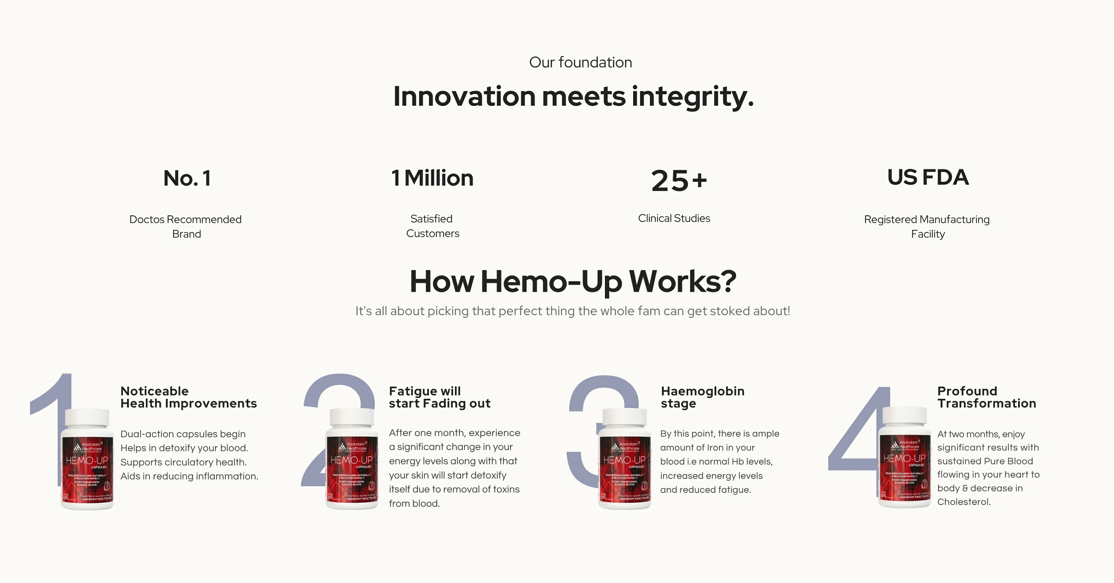 हेमो-अप का नियमित उपयोग आरबीसी को मजबूत और समर्थित करता है, जिससे दीर्घकालिक स्वास्थ्य और रक्त संबंधी समस्याओं के प्रति लचीलापन बढ़ता है।