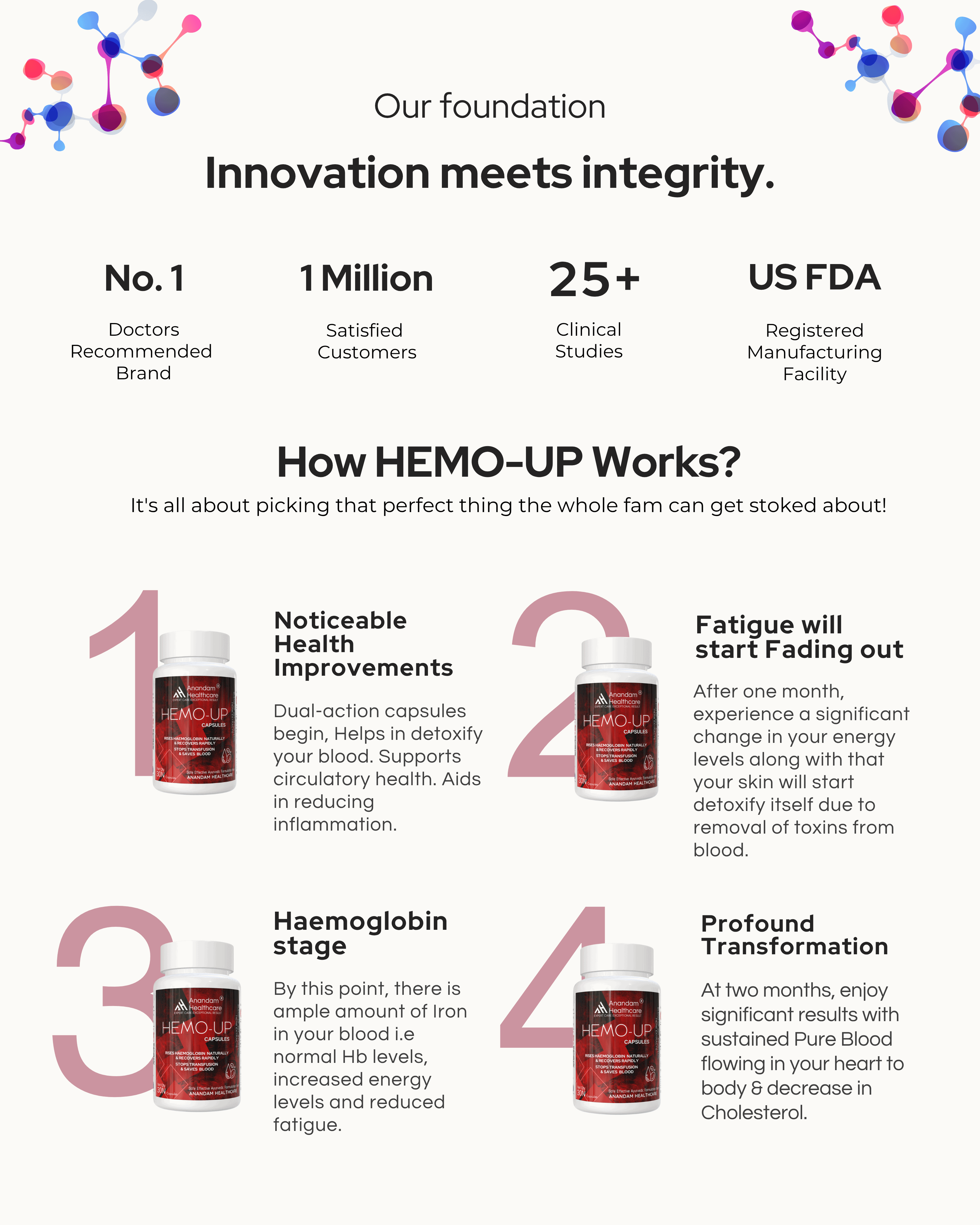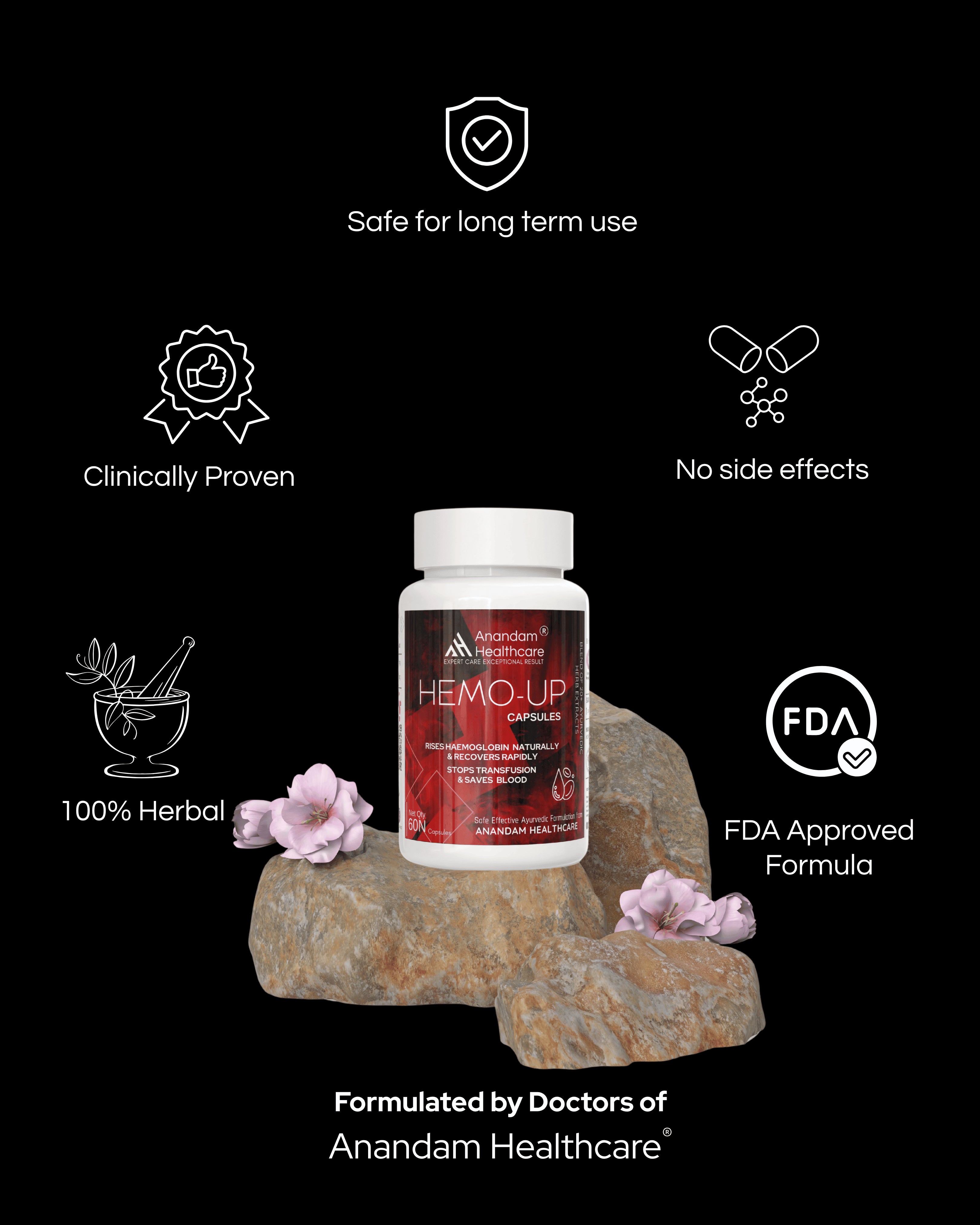 आनंदम हेल्थकेयर की ओर से हेमो-अप कैप्सूल प्रस्तुत है, जो हीमोग्लोबिन बढ़ाने, रक्त शुद्ध करने और आपके समग्र स्वास्थ्य को पुनर्जीवित करने का प्राकृतिक समाधान है!
