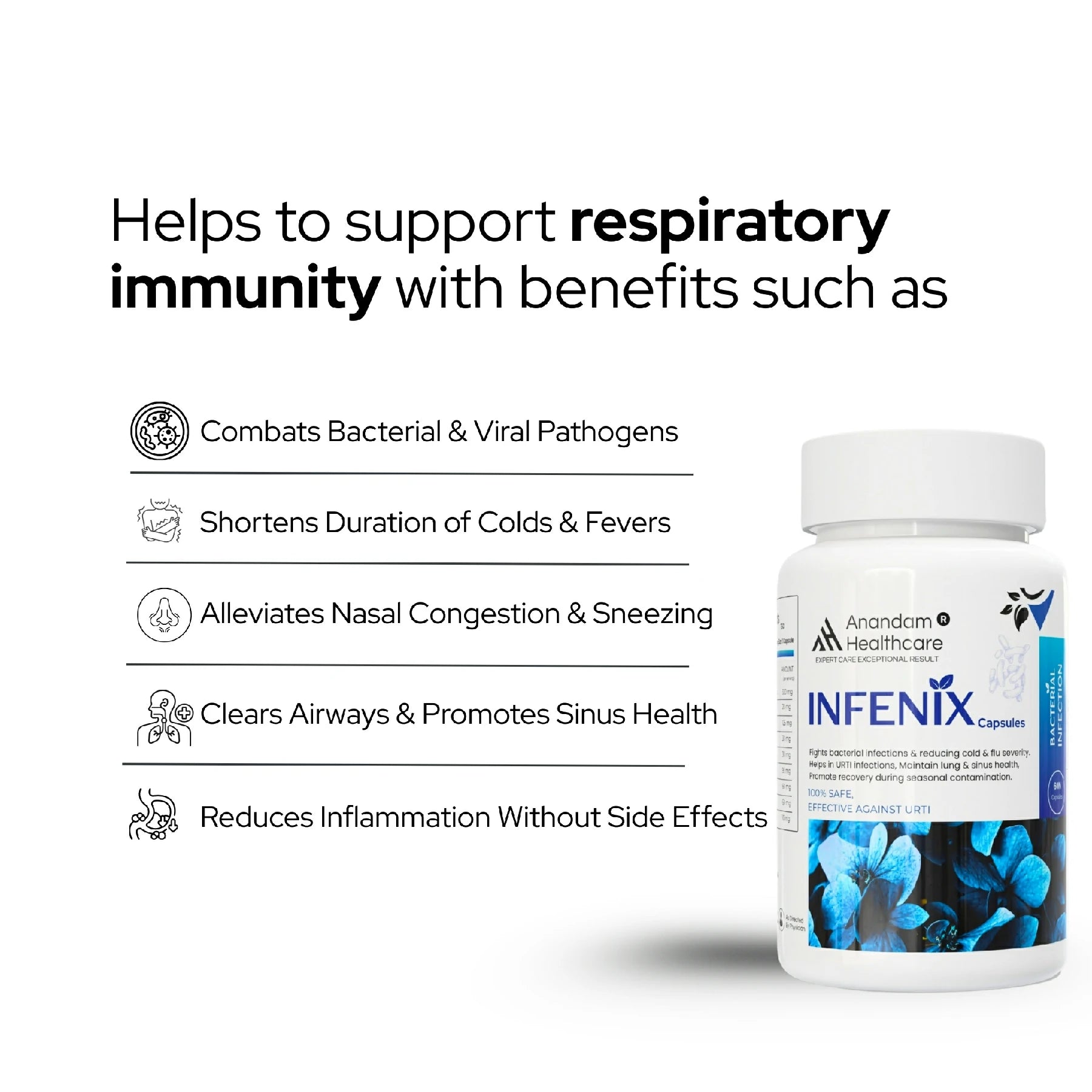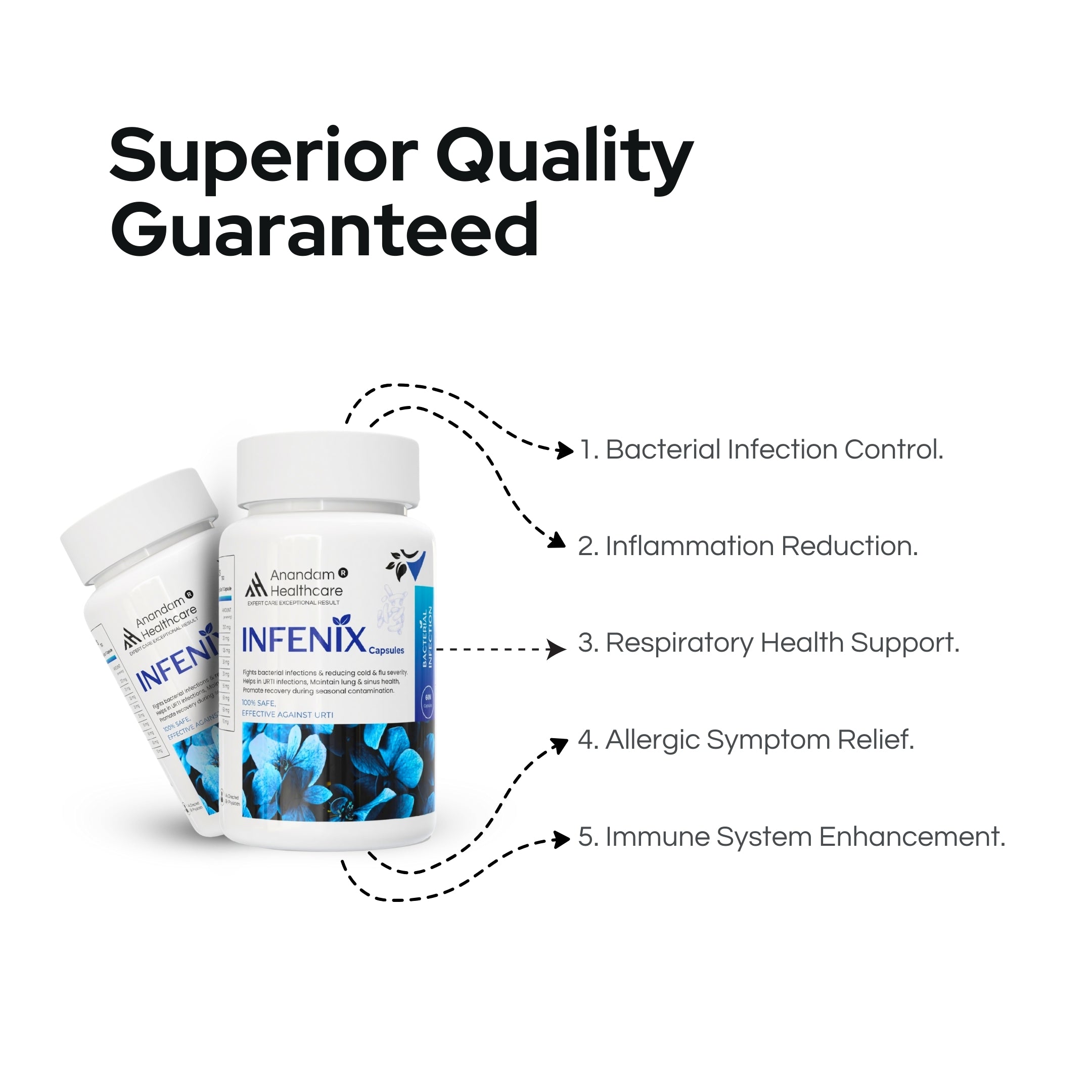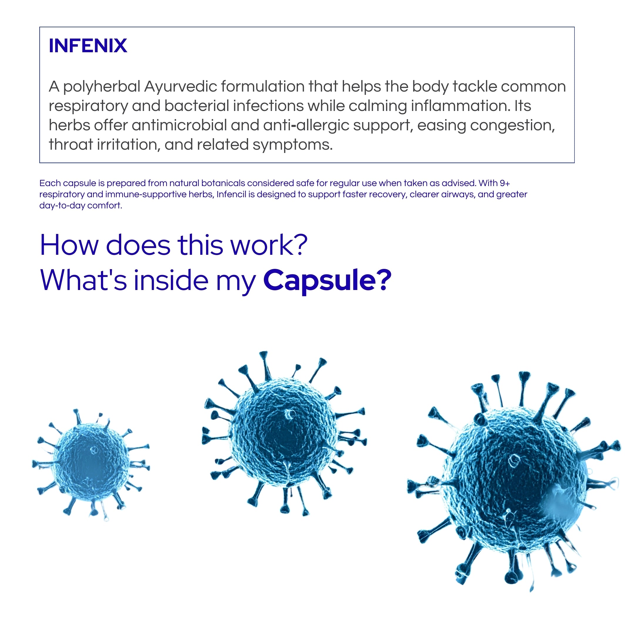 While INFENIX contains powerful antimicrobial herbs like Giloy and Tulsi, it is designed as a preventive and supportive supplement. It should not replace prescribed antibiotics for acute bacterial infections but can be used alongside them to boost recovery and prevent the recurrence of secondary infections.