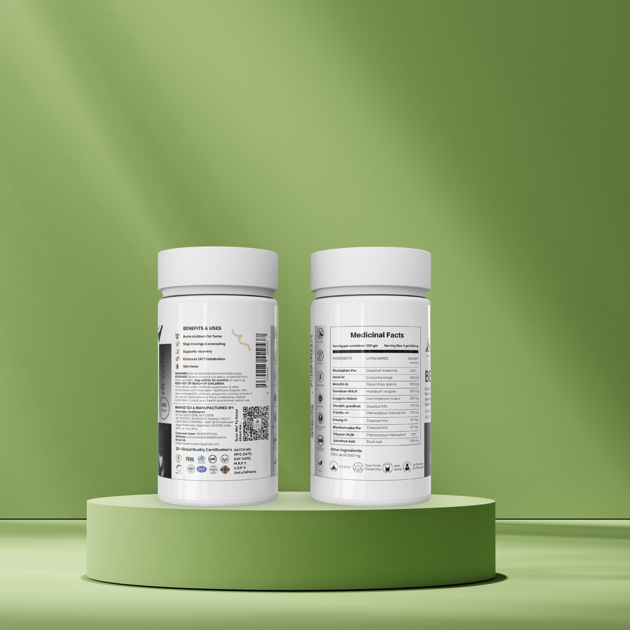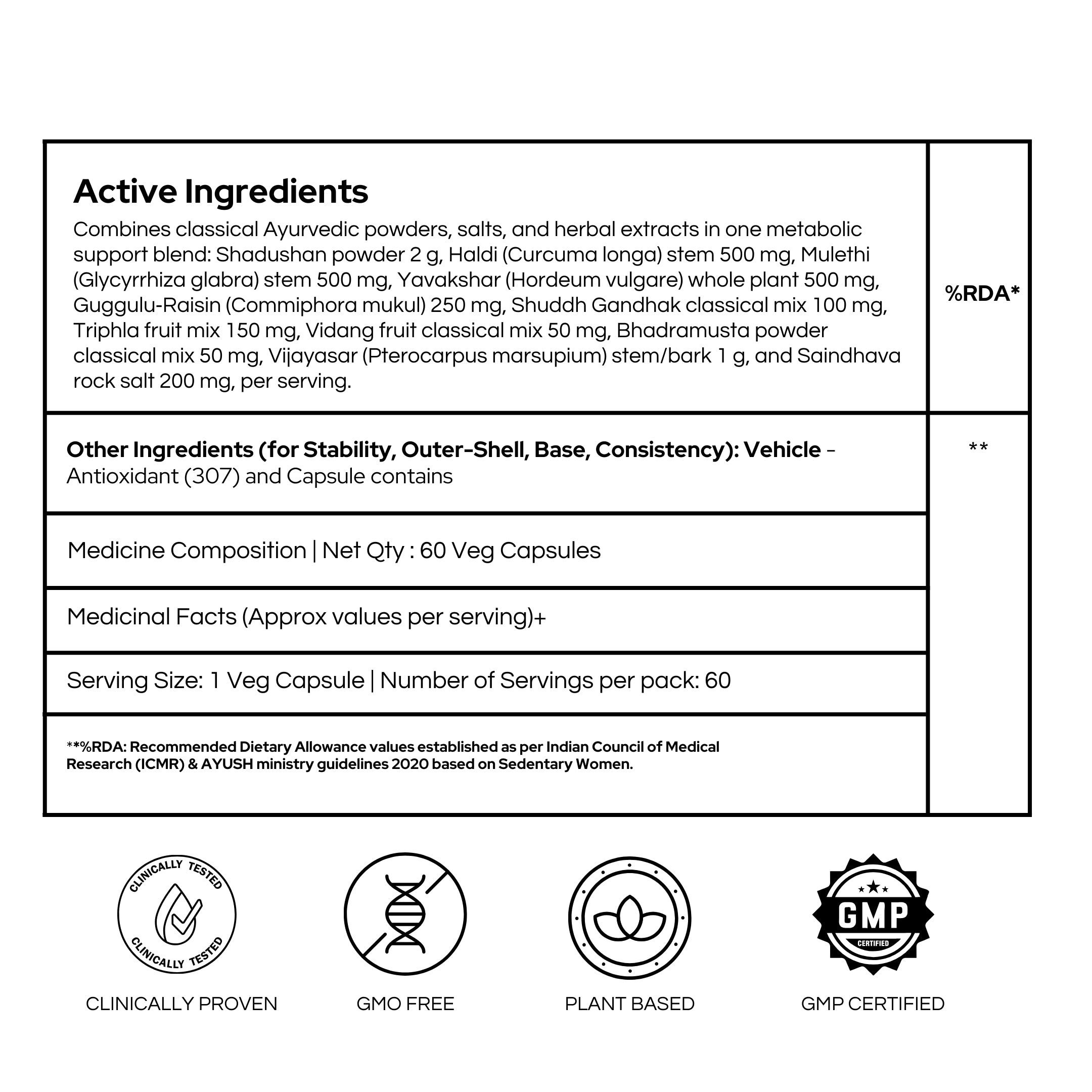 Yes, specifically selected herbs like Medohar Guggulu and Shadushan target visceral fat (the stubborn fat around organs and the belly) for effective reduction.