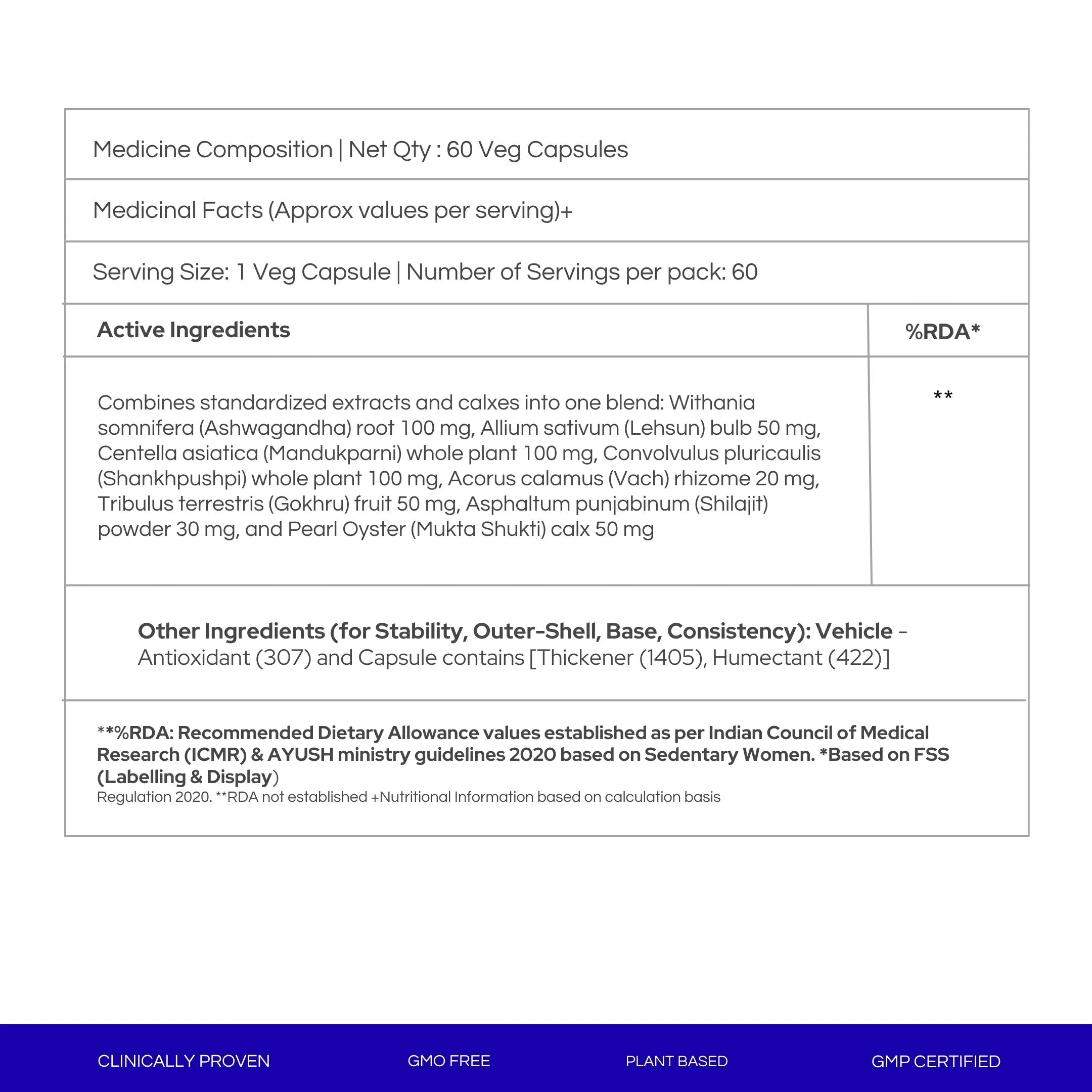 A clinically validated blend of adaptogens and vital herbs to restore energy, relieve stress, and boost strength.