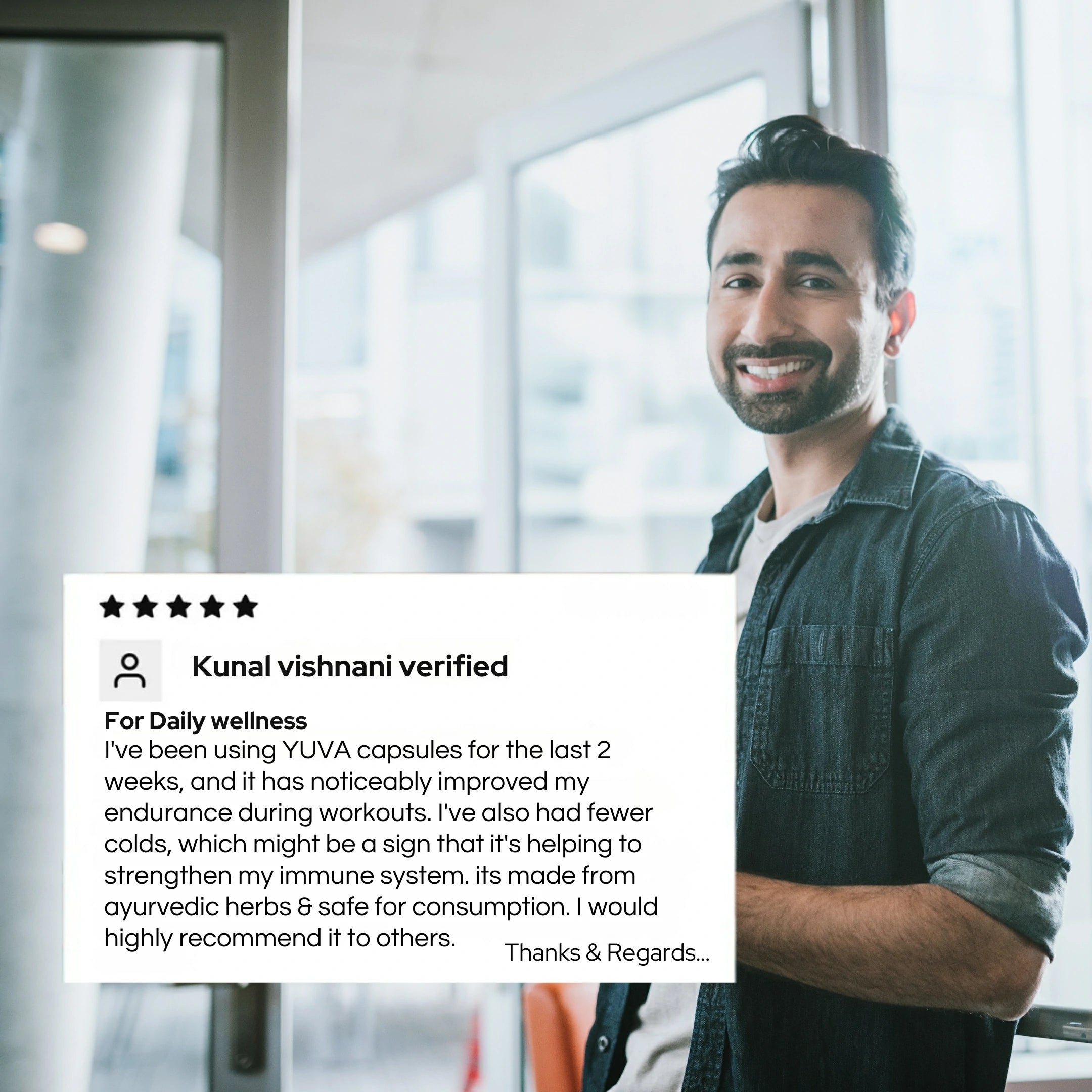 When accompanied by a healthy diet and regular exercise. Individual results may vary. Clinically validated ingredients in Yuva Capsules.