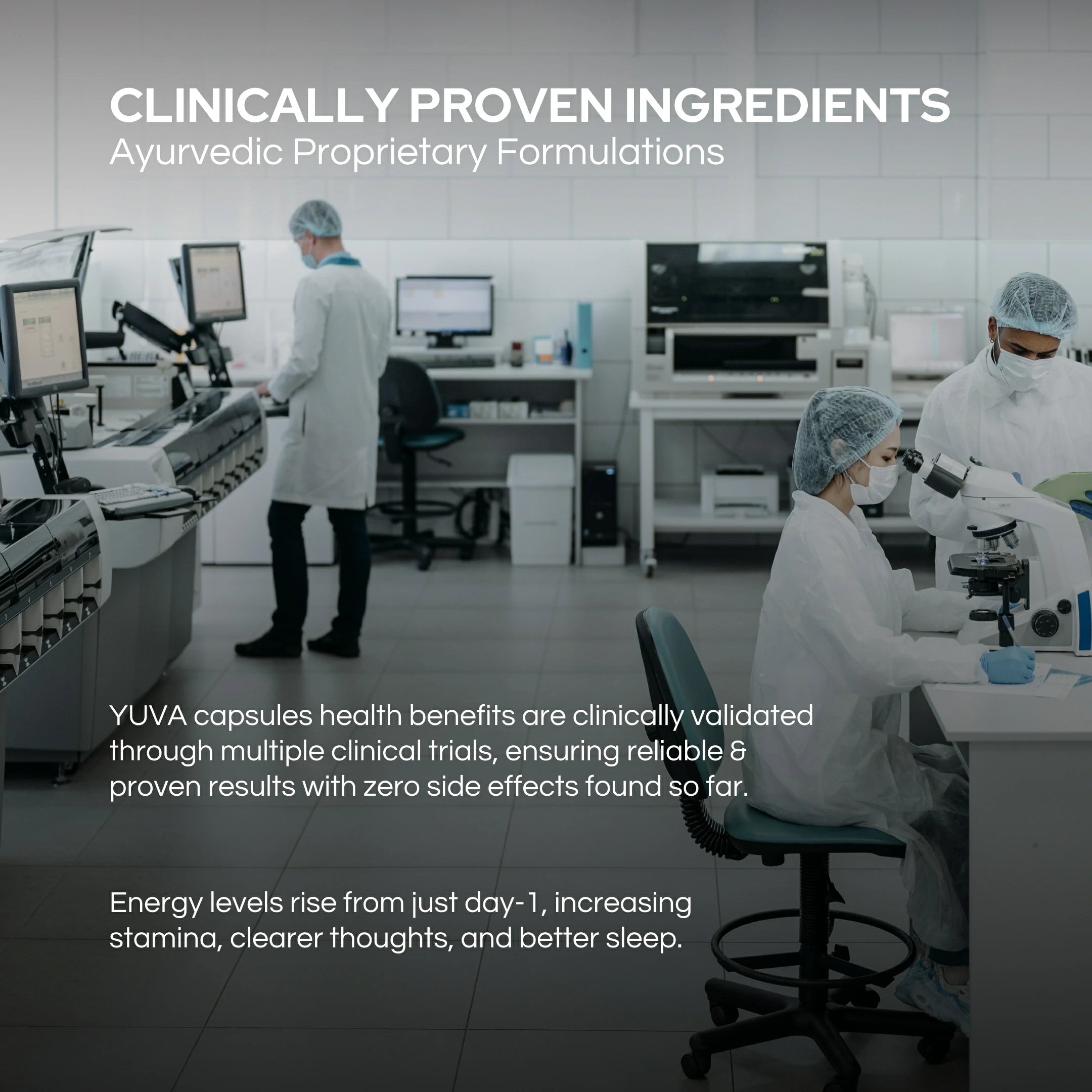 Anandam Healthcare® Yuva Capsules' health benefits are clinically validated through multiple clinical trials on key ingredients, ensuring reliable and proven results for vitality and strength.